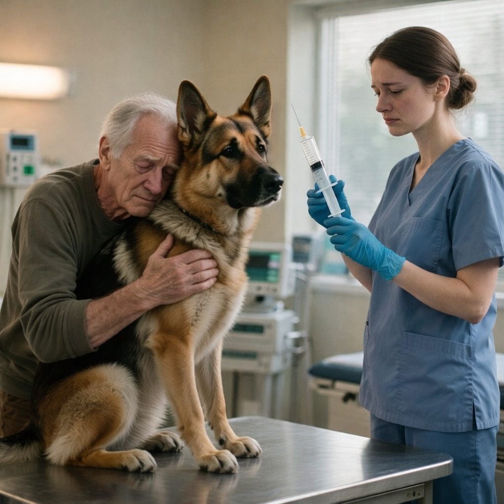 Pies po raz ostatni przytulił się do swojego pana przed eutanazją. Nagle weterynarz krzyknęła: „Chwileczkę!