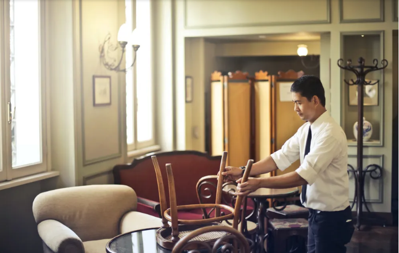 Simon natychmiast otrzymał fartuch i tacę i zaczął pracować jako kelner. Był upokorzony, ale nie chciał całkowicie stracić pracy.