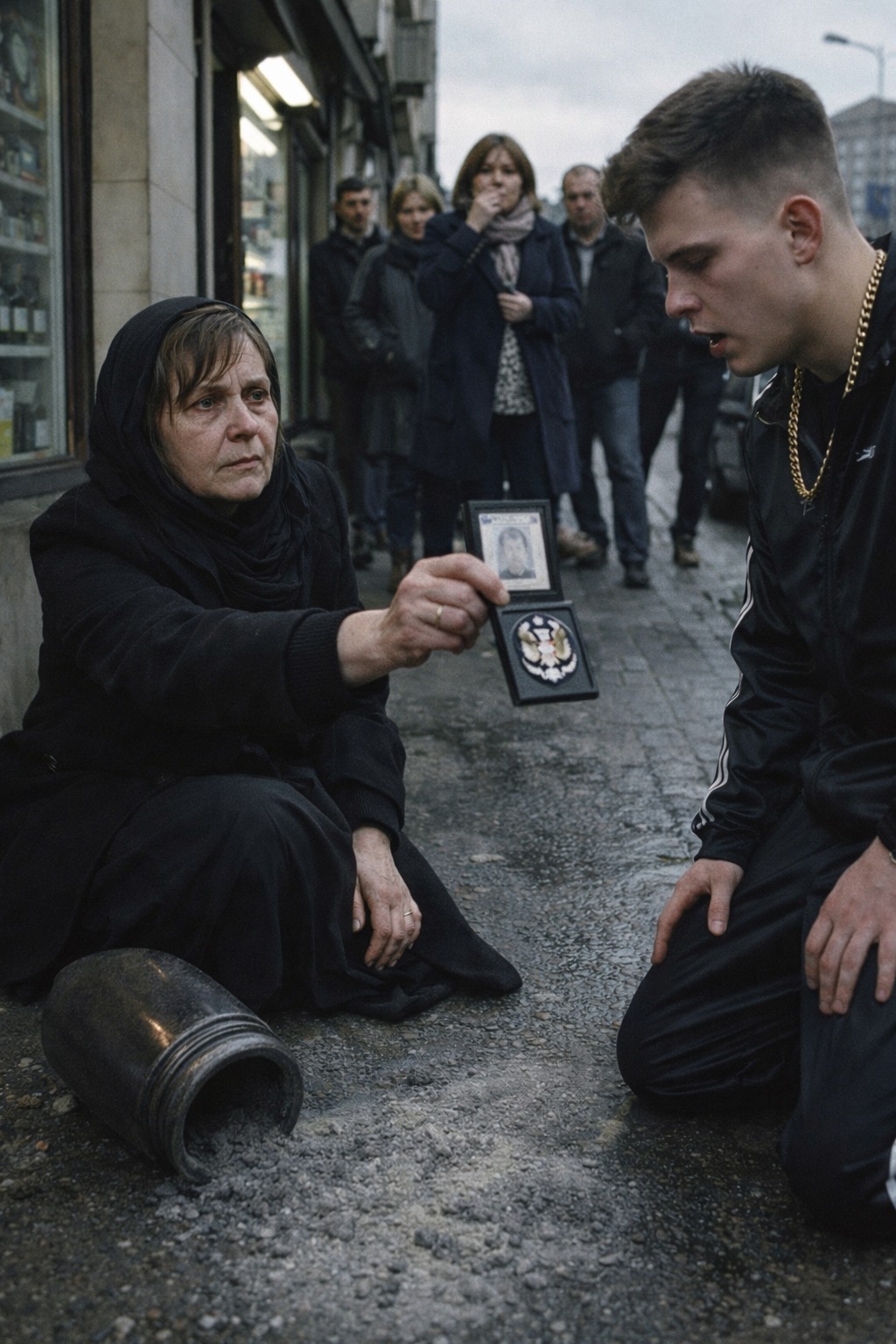 Wokół zaczęli zatrzymywać się ludzie. Jedni wyciągali telefony, inni szeptali coś między sobą, jeszcze inni patrzyli na chłopaka z otwartą pogardą.