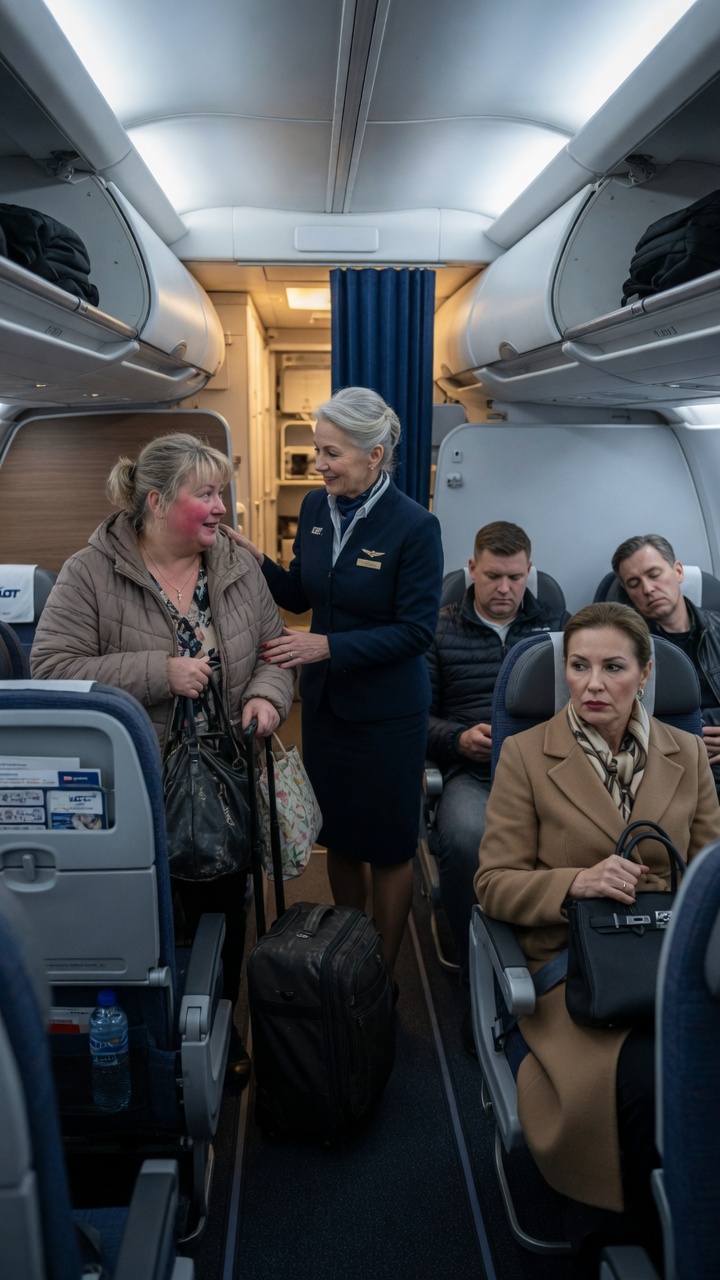 Szybkie sprawdzenie u stewardesy potwierdziło to, co już wiedziałam — w systemie doszło do pomyłki. Miejsce Zofii zostało przypisane podwójnie, ale drugi bilet widniał na moje nazwisko. Zapewniono ją, że zaraz znajdzie się dla niej inne miejsce.