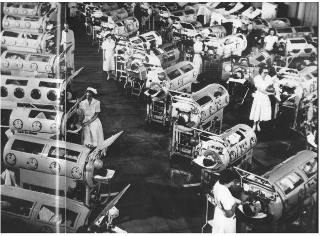 Dla najciężej chorych pacjentów przeżycie często oznaczało zamknięcie w „żelaznych płucach” — mechanicznym respiratorze, który podtrzymywał ich życie, pompując powietrze do sparaliżowanych płuc. W szpitalach stały rzędy tych wysokich cylindrycznych urządzeń, wypełnionych dziećmi walczącymi o życie. Wystarczy jedno zdjęcie tych „mechanicznych płuc”, aby przekazać destrukcyjny wpływ polio, to mrożące krew w żyłach przypomnienie strachu i niepewności, które ogarnęły rodziny przed pojawieniem się szczepionki w 1955 roku.