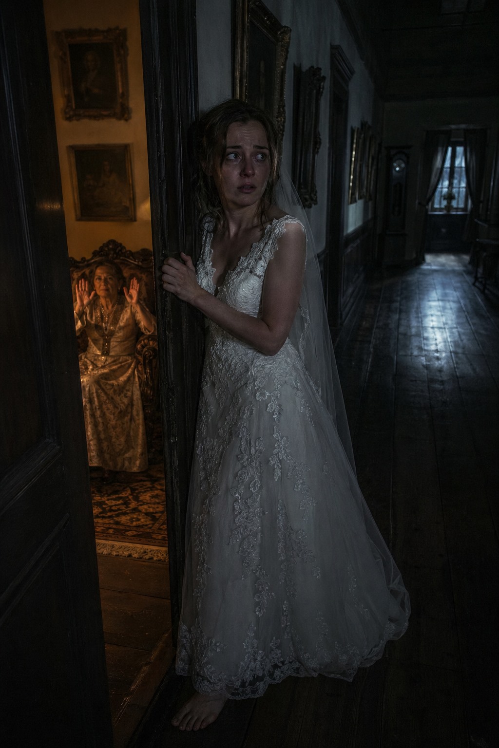 W panice Magdalena zaczęła miotać się po korytarzu, szukając choćby najmniejszej kryjówki. I nagle zauważyła, że obrazy na ścianach… poruszają się. Twarze na portretach odwracały się za nią, a ich oczy świeciły w ciemności. Stary zegar wybił trzy uderzenia, choć naprawdę była dopiero północ.