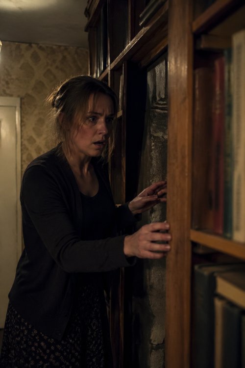 Wskazała ścianę za starym regałem. „Przesuń go”.
